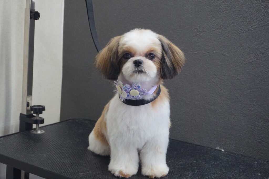 ✂️ 2. トリミング台の上では…ちょっぴりオトナの表情!?