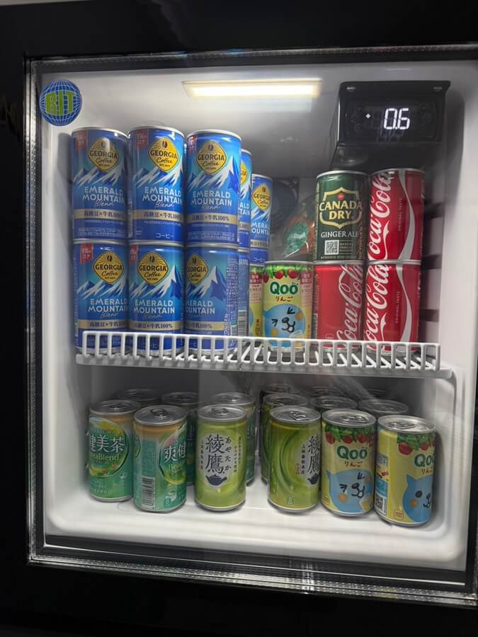 コーヒー、お茶、炭酸飲料、そしてお子様も大好きなフルーツジュース(Qooちゃん!)まで、まるで小さな自販機のように色々な種類のドリンクがずらり!🥤