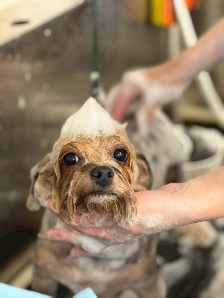 見てください、このアワアワ姿〜!🛁☁️ 頭の上にちょこんと乗った「モコモコ泡の帽子」が似合いすぎませんか?😍 おめめをパクリと開けて、お風呂中もとってもおりこうさん! たっぷりの泡で優しくマッサージして、汚れもスッキリさっぱりリフレッシュです♨️